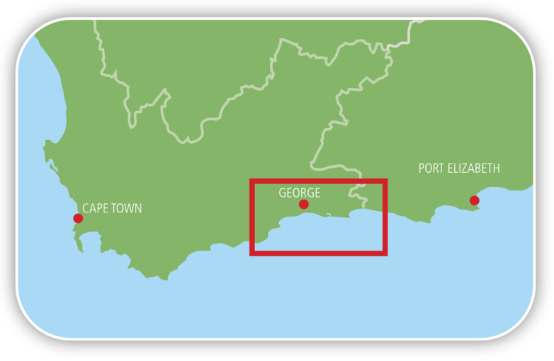 Before reaching George, consider a detour to Glentana via a scenic coastal road from Great Brak River that reconnects with the N2 to George. Also halfway to George off the N2 is the beautiful Herold’s Bay, a favourite with George locals. When the French naturalist, Francois le Vaillant, explored this area in 1781, he discovered Europeans had already settled here as cattle farmers and woodcutters, with a small population of the remaining original people, the Outeniqwa (meaning ‘a man laden with honey’) Khoi-na. In 1813, under the leadership of a man known as Dikkop (meaning ‘stubborn’), the remnants of this once proud Khoi-na clan living at Hoogekraal asked that a missionary be sent to establish a safe haven for them. Carolus Pacalt, a Moravian missionary from Suurbraak in the Overberg, answered the call and dedicated the last five years of his life to this community: his new congregation honoured him by renaming the settlement Pacaltsdorp.