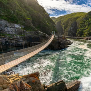A wild and adventurous place with deep gorges which you can canoe up or tube down and coastal walks to waterfalls virtually falling into the sea. The suspension bridges over Storm’s River are a highlight.